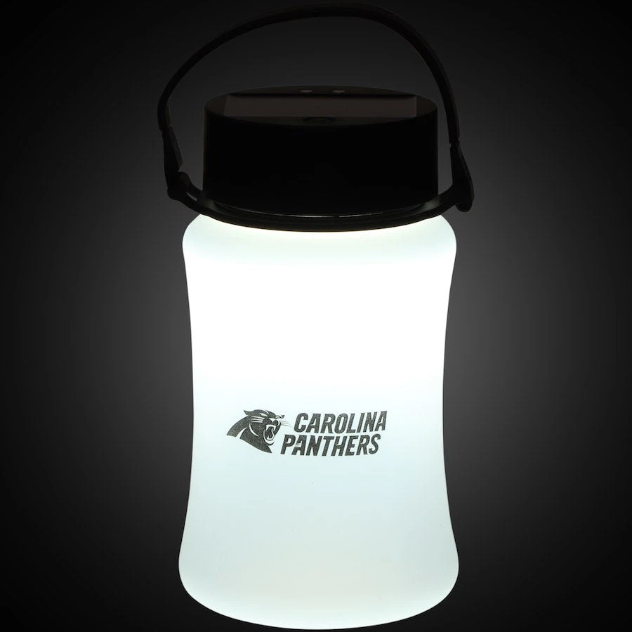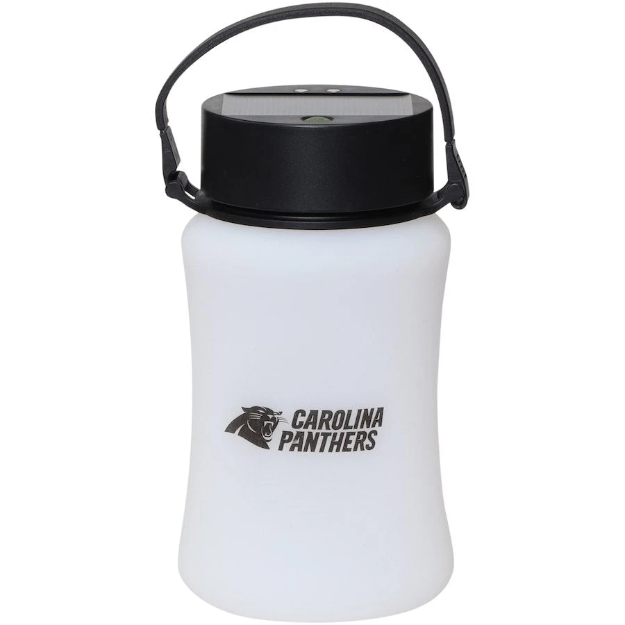 Carolina Panthers Frosted Silicone Solar Lantern Product ID: 2664450 Material: 100% Silicone – Base; 100% Plastic – Top Compact and collapsible Three LED lights Adjustable strap Measures approximately 3.94″ x 6.69″ x 3.94″ Four light settings Printed graphics Light setting power switch Lightweight Screw off top housing solar panel Officially licensed Imported Brand: Evergreen Enterprises