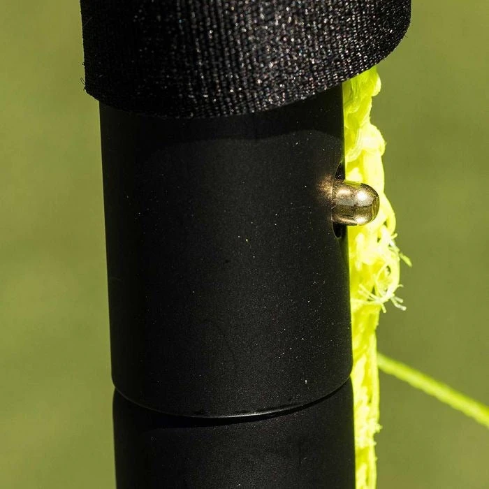 - The steel goal is easy to set up, precision locking pins secure the poles together and galvanized ground stakes that keep the goal attached firmly to the ground.