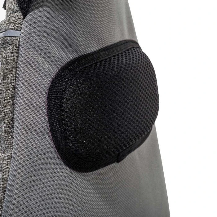 Rugged heather gray polyester material w/ team color accents
