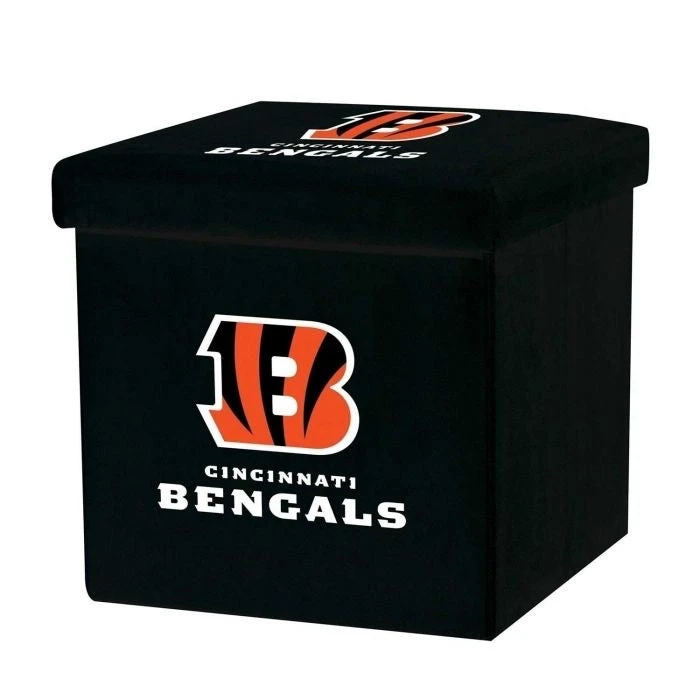 Keep all of your things organized while showing your team colors with these fully collapsible storage units. Perfect for any bedroom, playroom, living room or anywhere else you need a quick storage solution. Each unit is constructed of durable MDF board and polyester fabric, allowing it to double as your footrest on game day! The padded top lid is fully removable for easy access to the storage compartment. Perfect for stashing magazines, remotes, and more! Now available with your favorite NFL team’s logo!