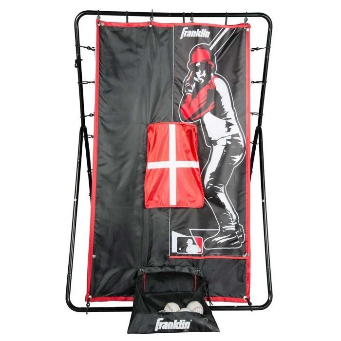 The Franklin Sports 2-in-1 Switch Hitter Rebounder and Pitching Target is the perfect training tool for any young player. The heavy-duty pitch back net lets you practice throwing and fielding pop-flies, ground balls, and line drives with ease. The pitching target side allows young pitchers to learn how to command the zone against righties and lefties with the lifelike switch hitter attachment. This is the perfect training aid to practice all your skills at once!