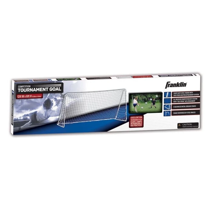 When it’s game time, this full-size soccer goal is what you”ll need for the next 90 minutes. Its tournament-grade quality begins with heavy-duty, rust-resistant steel tubing and reinforced bars that provide a sturdy frame, while the all-weather PE net withstands vigorous practice and outdoor environments.Six rust-resistant ground stakes firmly and securely anchor the goal in the ground. Precision fit locking pins allow for easy and secure assembly as well as break-down and storage.
