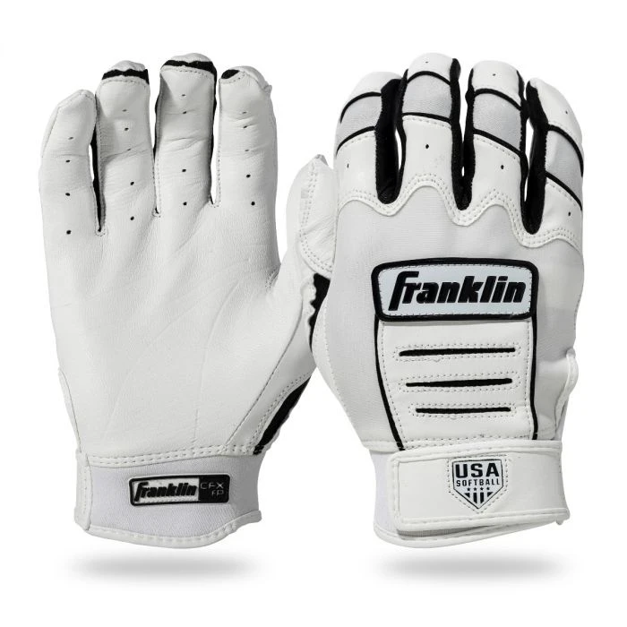 Franklin Sports is bringing its time-honored classic batting gloves to the world of faspitch softball and changing the game for good with the all-new CFX FP – USA. These are the first batting gloves from Franklin Sports to be specifically designed and built to fit the contours of the female hand for increased comfort and performance at the plate. Constructed with the same premium quality leather as our CFX Pro model, the CFX FP is designed to bring the same level of performance exhibited by our MLB pros to softball diamonds across the country. As the official batting glove of USA Softball, the CFX FP is made to play at the highest level with unmatched durability to last season after season. Bring your softball game to the next level today with the glove built for you. Change the game and grab your pair of CFX FP batting gloves today!